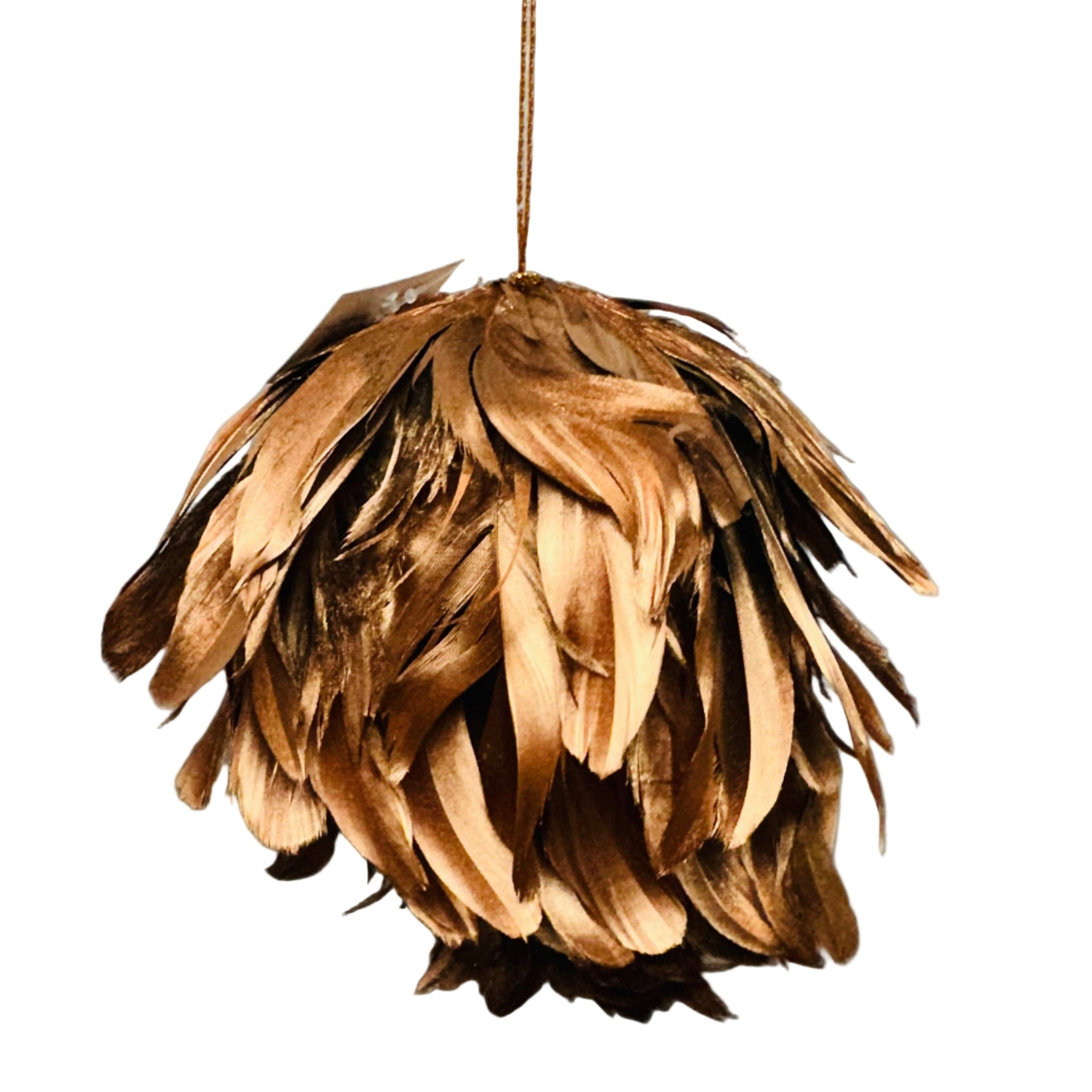 With a slight shimmer, these gold, silver and bronze Feather Ball Ornaments make a beautiful statement. Great on a tree or used in a bowl arrangement.