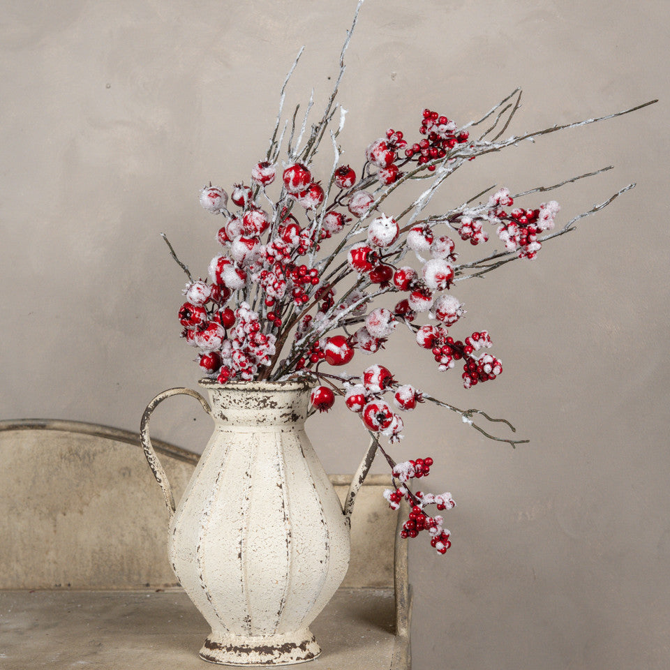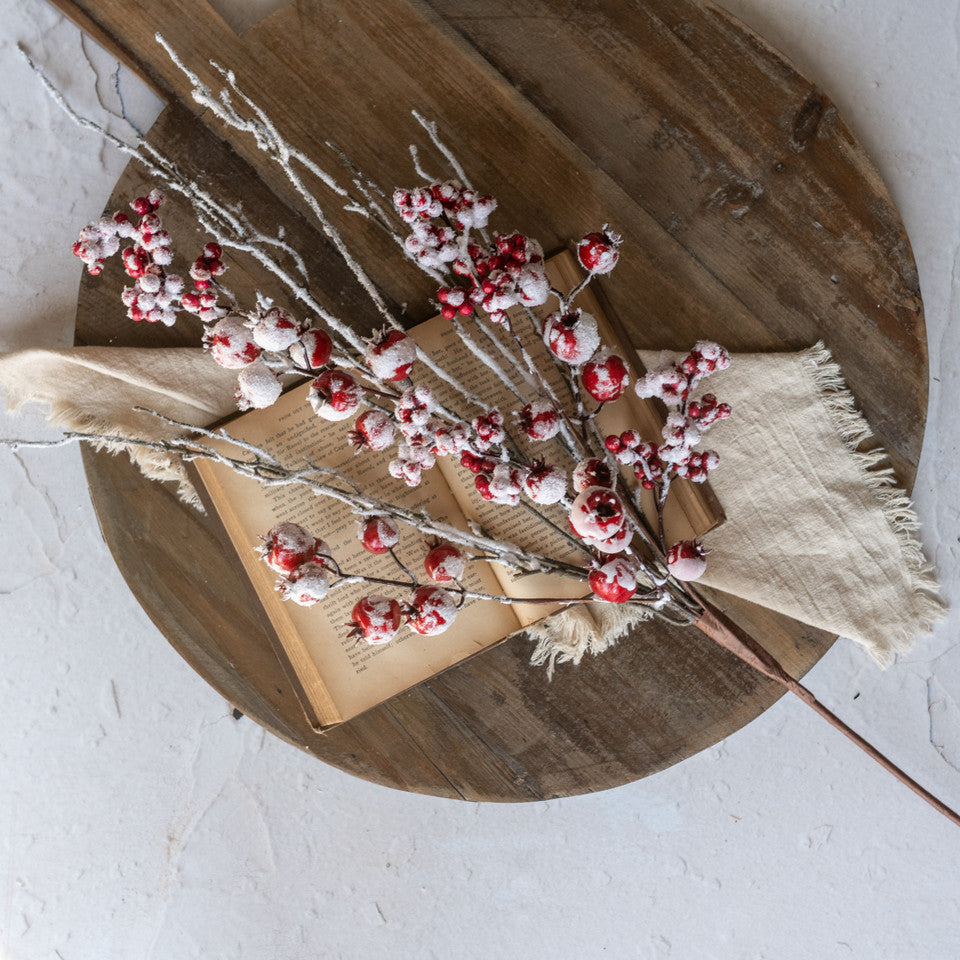 So "berry" pretty! These Frosted Red Berry Picks serve as winter's fruit. Frozen in time, this pick features deep red berries dusted with the first snow of the season.