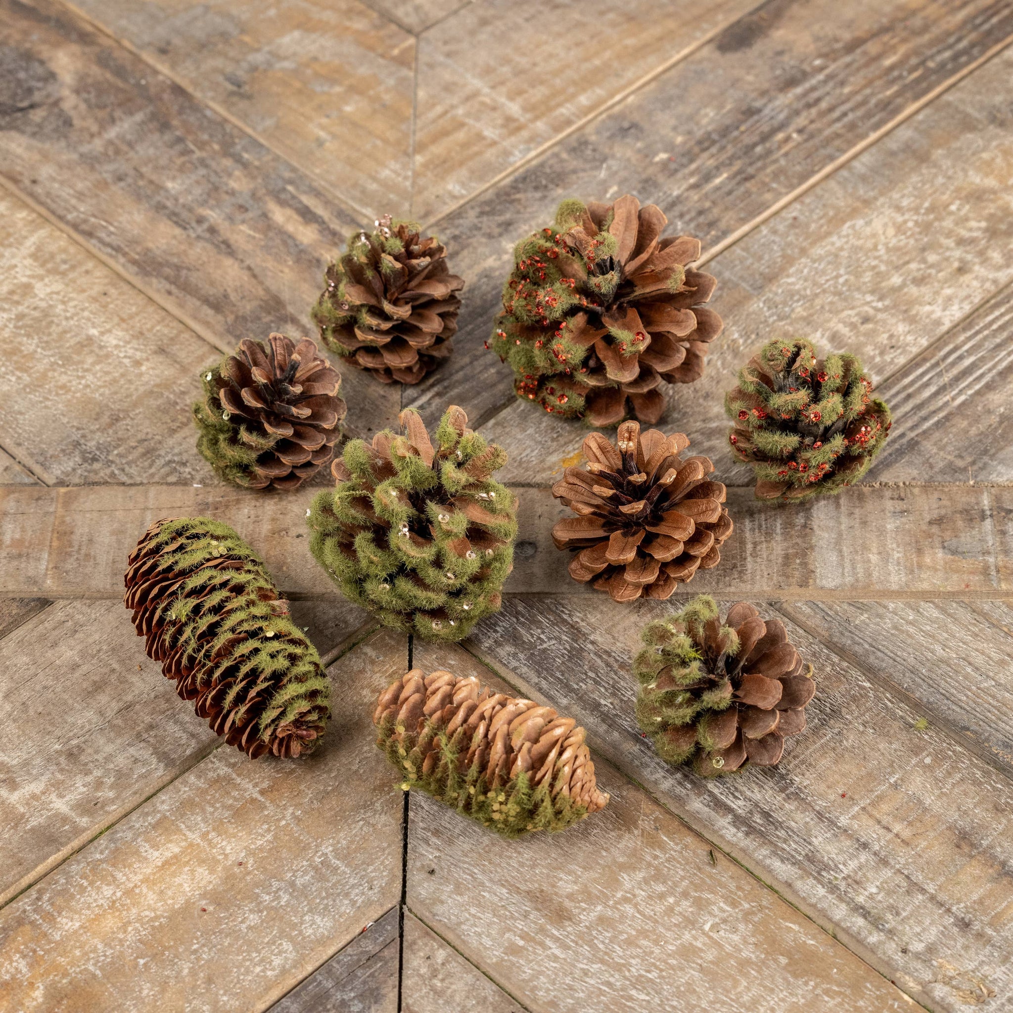 Such a unique bowl filler! These mossy and magical pinecone, moss, and sequin bowl fillers are sure to bring the cozy warmth of the outdoors into your home. Nature inspired and so versatile! 9-pieces per set.