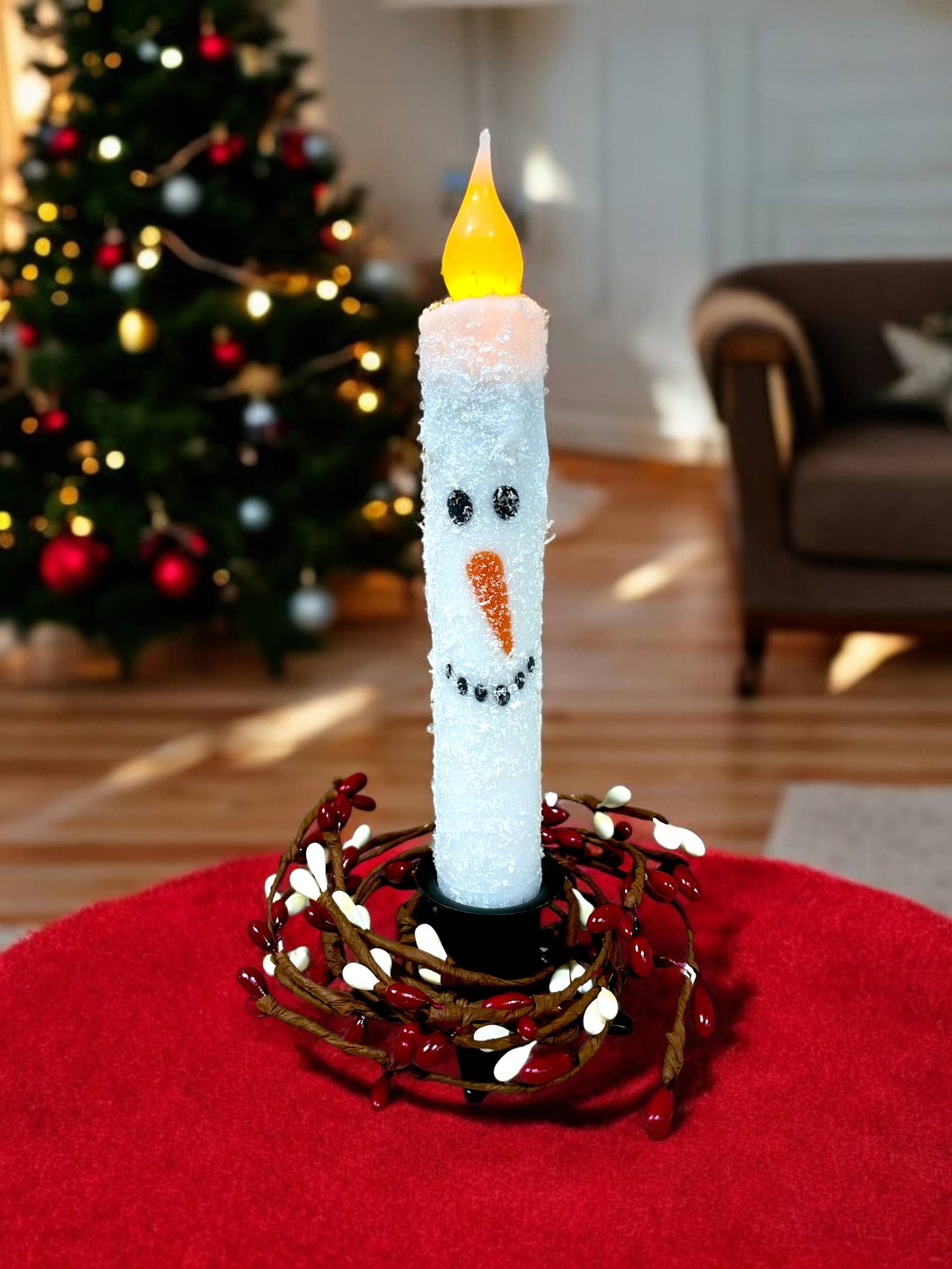• Load image into Gallery viewer, Snowy Snowman Face Battery Operated Taper Candle