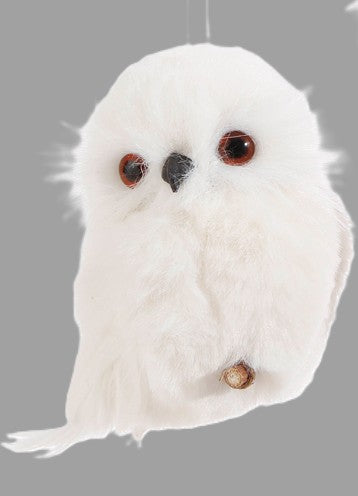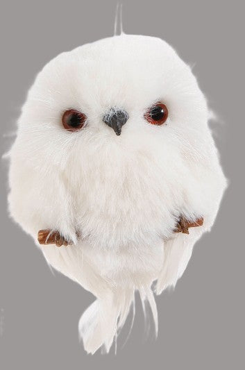This snowy white owl ornament will add a magical beauty to your holiday décor. He can be hung or placed in a spooky Halloween or festive Christmas vignette. Place him wisely. They are made of faux feathers and foam and are soft to the touch.