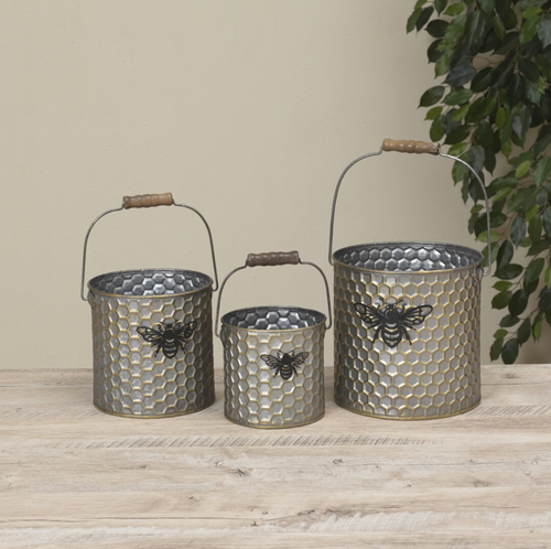 Galvanized Metal Embossed Bee Design Buckets![]()  - Regular price