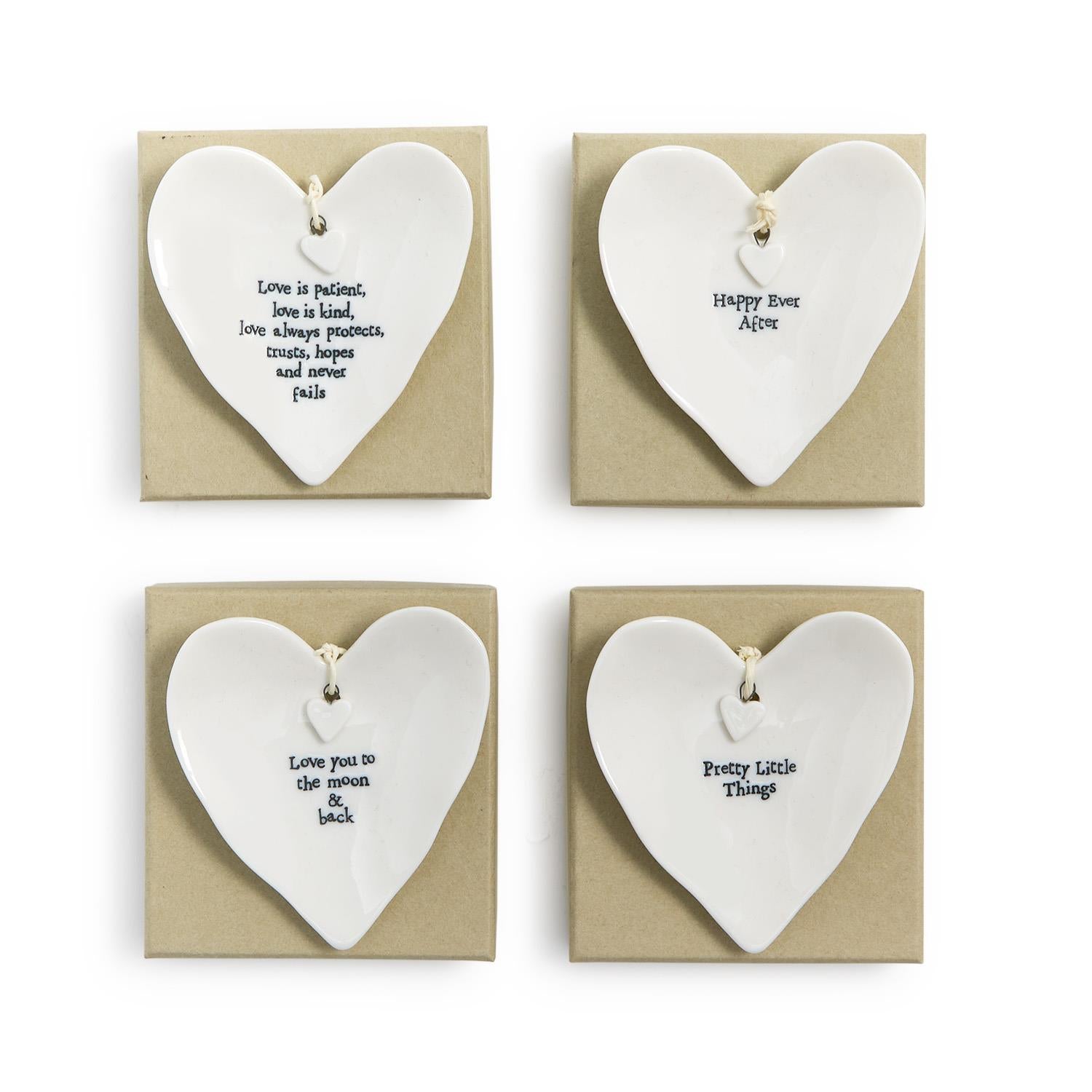 These lovely heart-shaped porcelain ring dishes come in four heartfelt sayings. Beautifully packaged in a gift box makes these excellent gifts for mom, girlfriends, Valentine's Day, Mother's Day and birthdays or just because. Choose from 4 sayings: